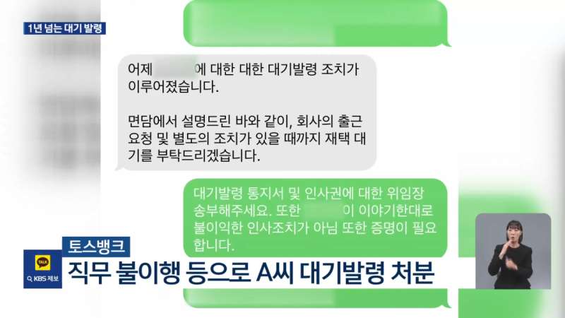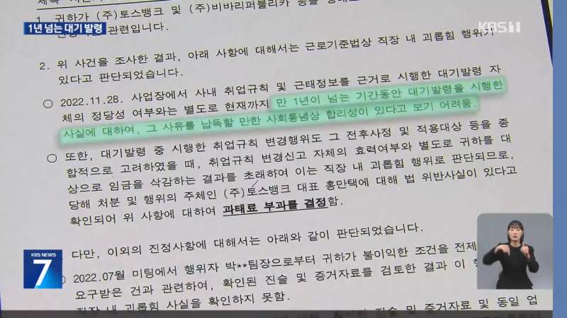 위로 발언 했다는 이유로 1년 넘게 대기발령 실시