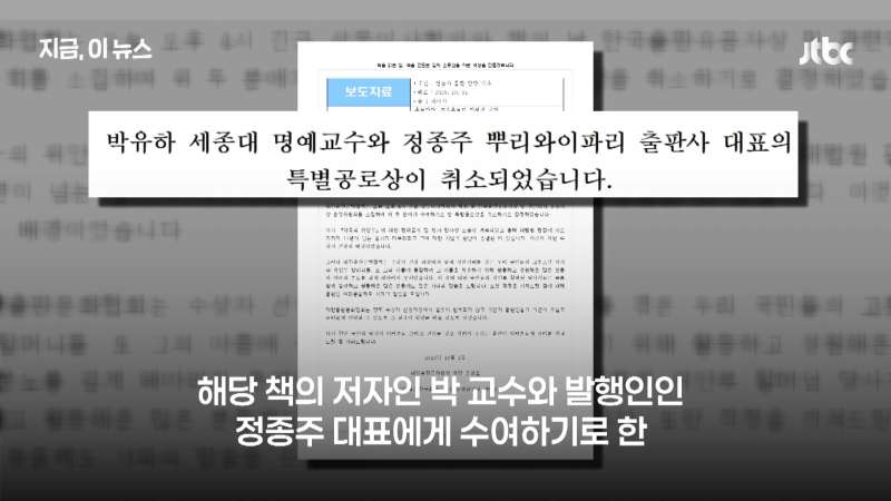 '제국의 위안부' 박유하... 논란 끝에 특별공로상 취소 결정