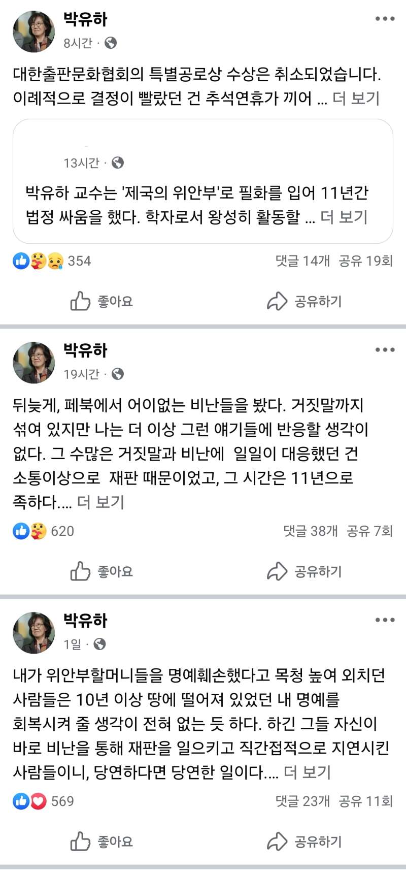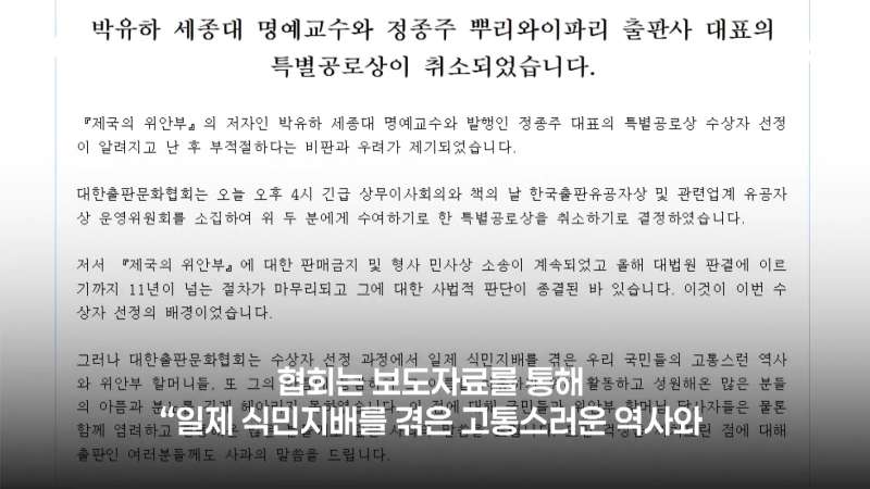 - 10 '제국의 위안부' 박유하... 논란 끝에 특별공로상 취소 결정 2025.10.02