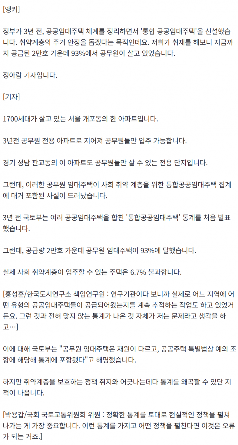 '취약계층 위한' 통합공공임대주택…93%가 '공무원 전용'