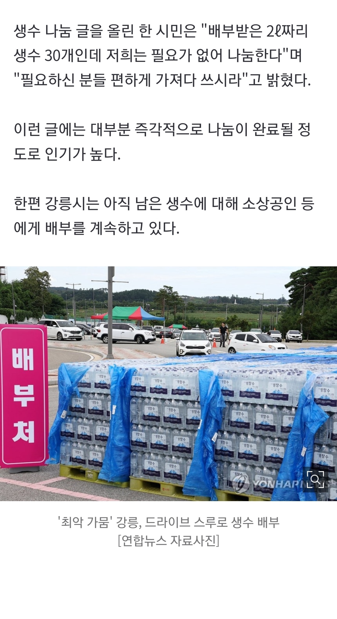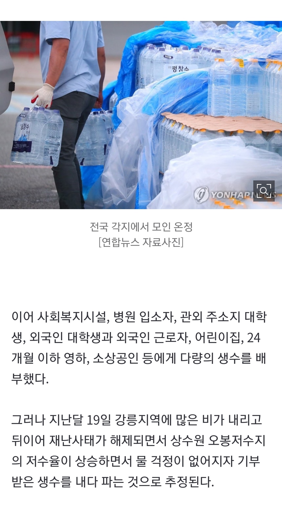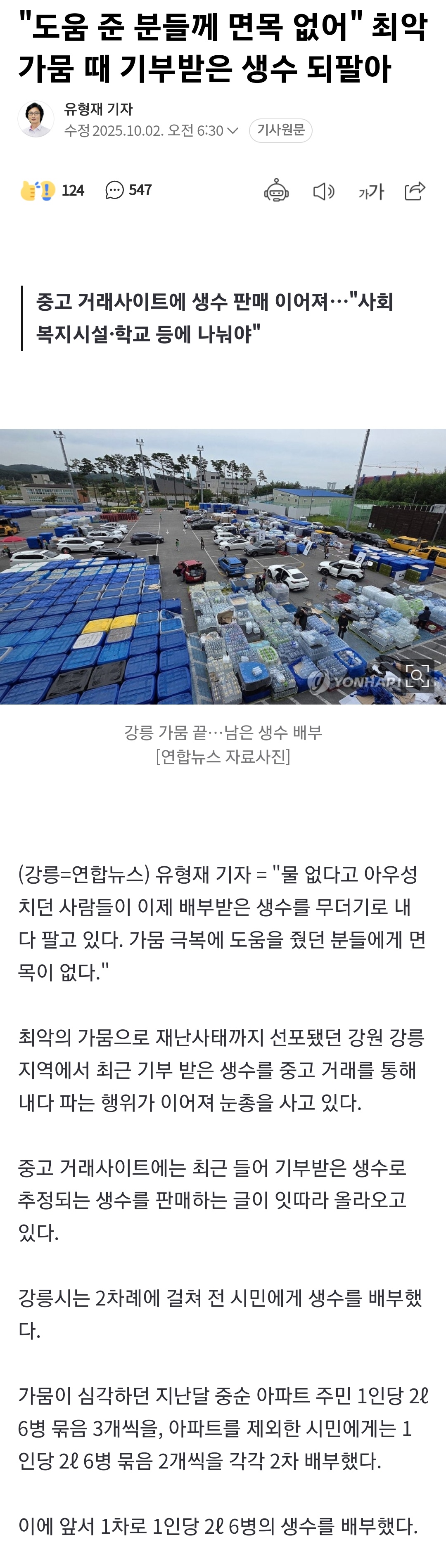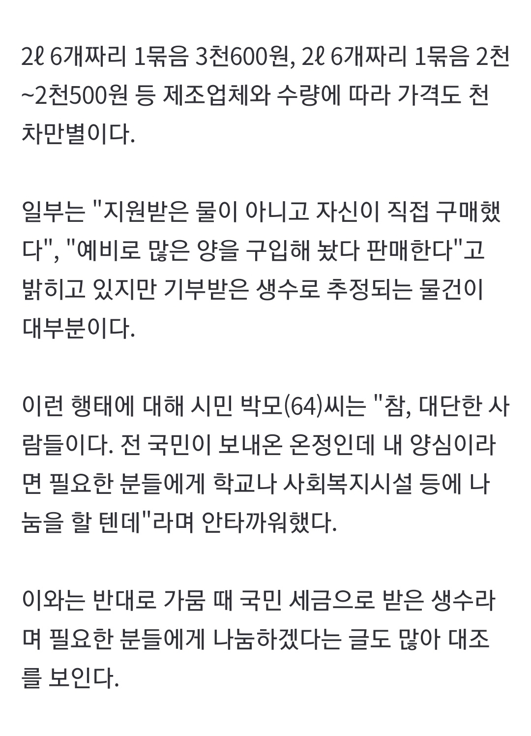 가뭄 때 기부받은 생수 되판 사람들